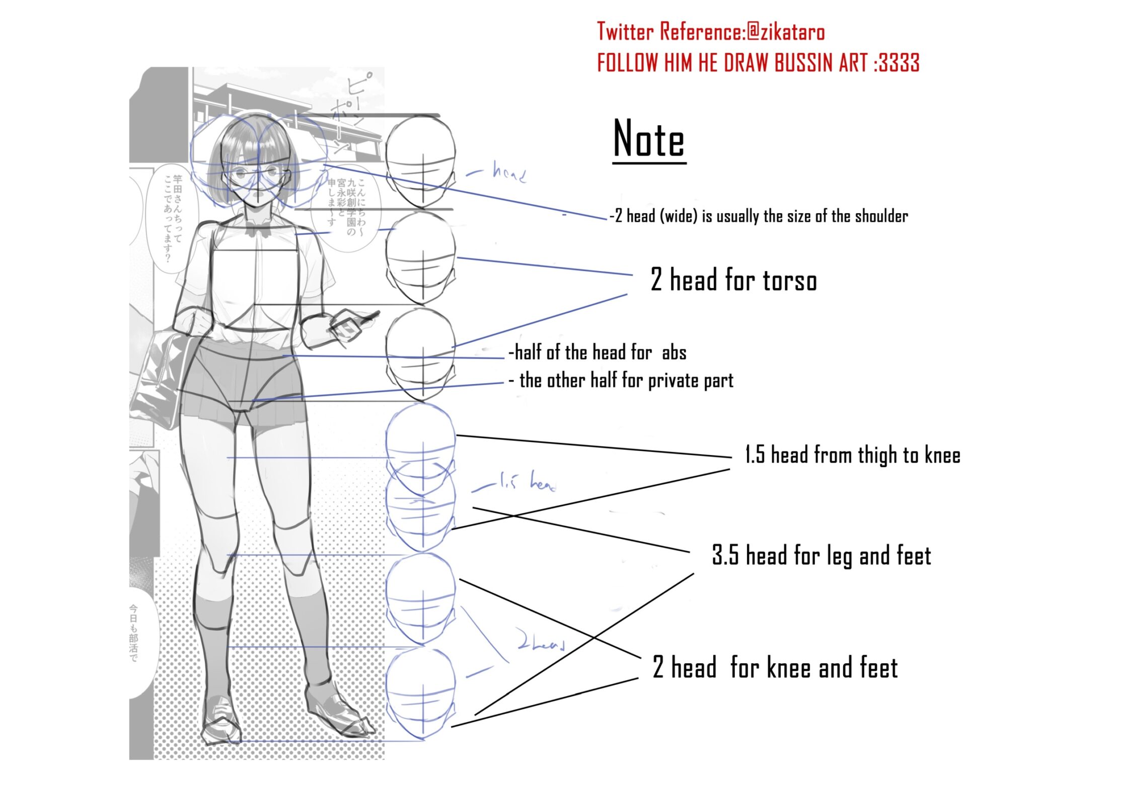 In this guide, Dnumdez breaks down the proportions used by Zikataro, an artist he admires. This is a great way to learn from other artists and delve deeper into what makes their art attractive so you can apply it to your own work!